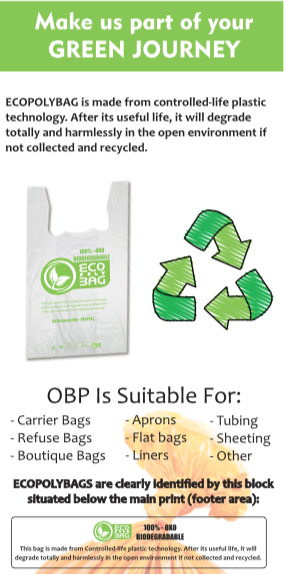 The ECOBAG selection of Oxo-biodegradable technology is now the preferred technology used in excess of 25.5 Billion Carrier Bags supplied into a number of High Street Retailers and leading Brand owners around the Globe , as well as the chosen technology used in several million PP Straws and PP Disposables, Courier / Mailing Envelopes , Refuse Sacks/Bin Liners, Food Freezer Bags, Cling Films, Bread and Produce bags/Film, BOPP/CPP Films ,Sachets and Bags, Box Liners for produce, Frozen Food Packaging and Toilet Tissue wrap, Direct Mail, Mail Wrap, Media Packaging, PE/PP labels, Transit Packaging, Pallet Covers, Dog Waste Bags and Stretch Film, just to name a few other applications.